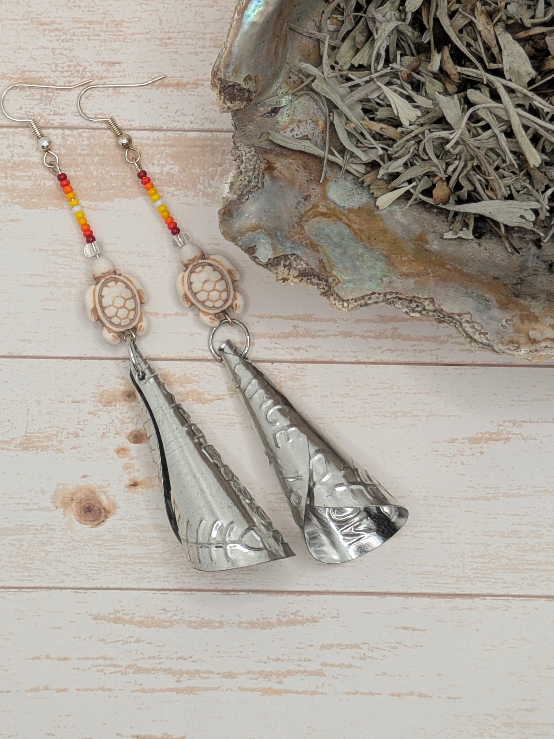These earrings are beaded with size 11 seed beads and jingle cones.